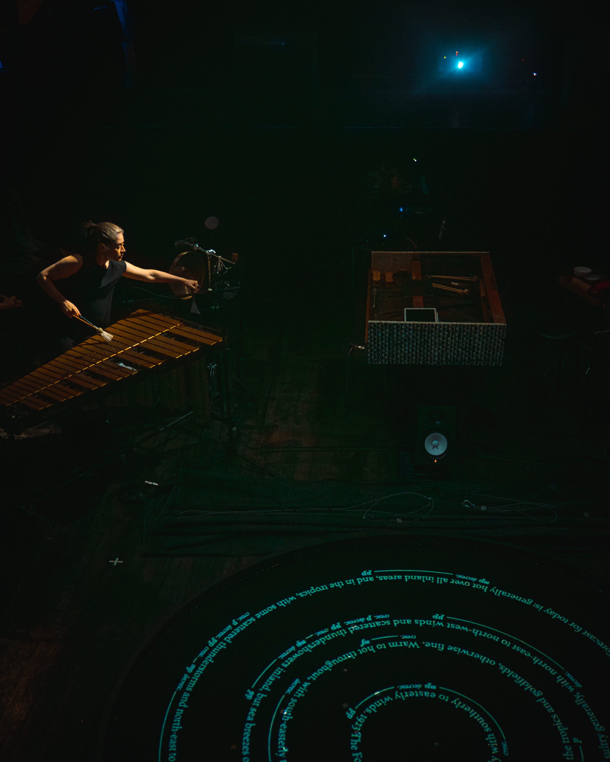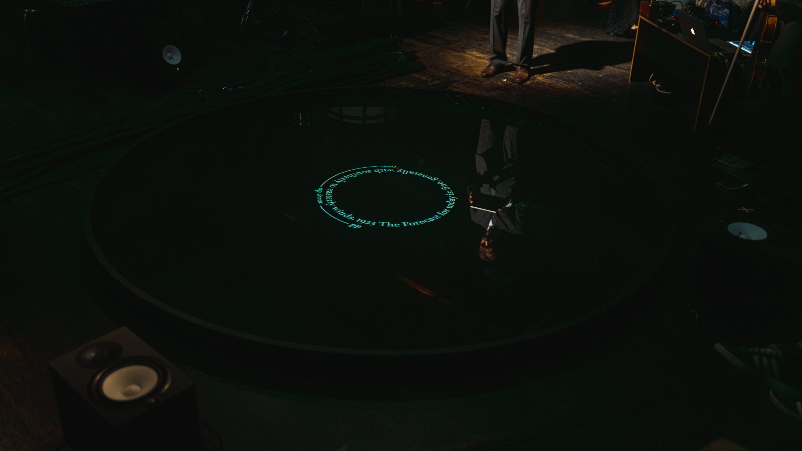 At the core of The Forecast is the balance of human (text) and non-human (generative, watery) notation. Performers respond to both with semi-structured improvisation.
